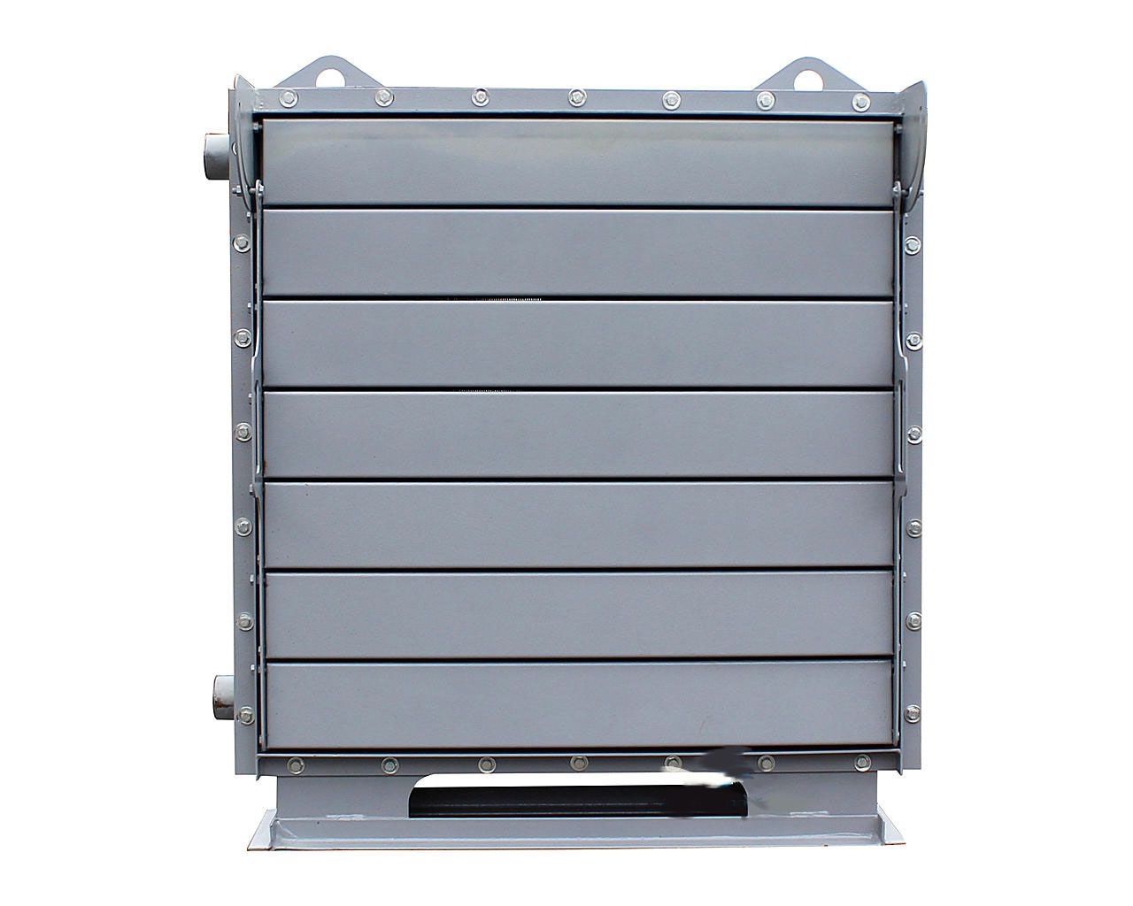 На «лицевой» стороне воздухонагревателя АО2 водяного (со стороны калорифера) предусмотрены поворотные жалюзи, посредством которых можно частично спрямлять и регулировать проходящий воздушный поток.